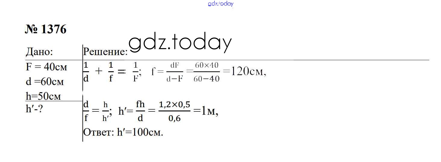 Ответы к Световые явления Решение. 8 класс 1376 Сборнику задач по Физике для 7-9 класса Перышкин, Лонцова Экзамен УМК 2016