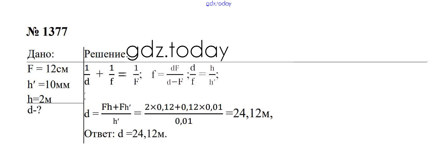 Ответы к Световые явления Решение. 8 класс 1377 Сборнику задач по Физике для 7-9 класса Перышкин, Лонцова Экзамен УМК 2016
