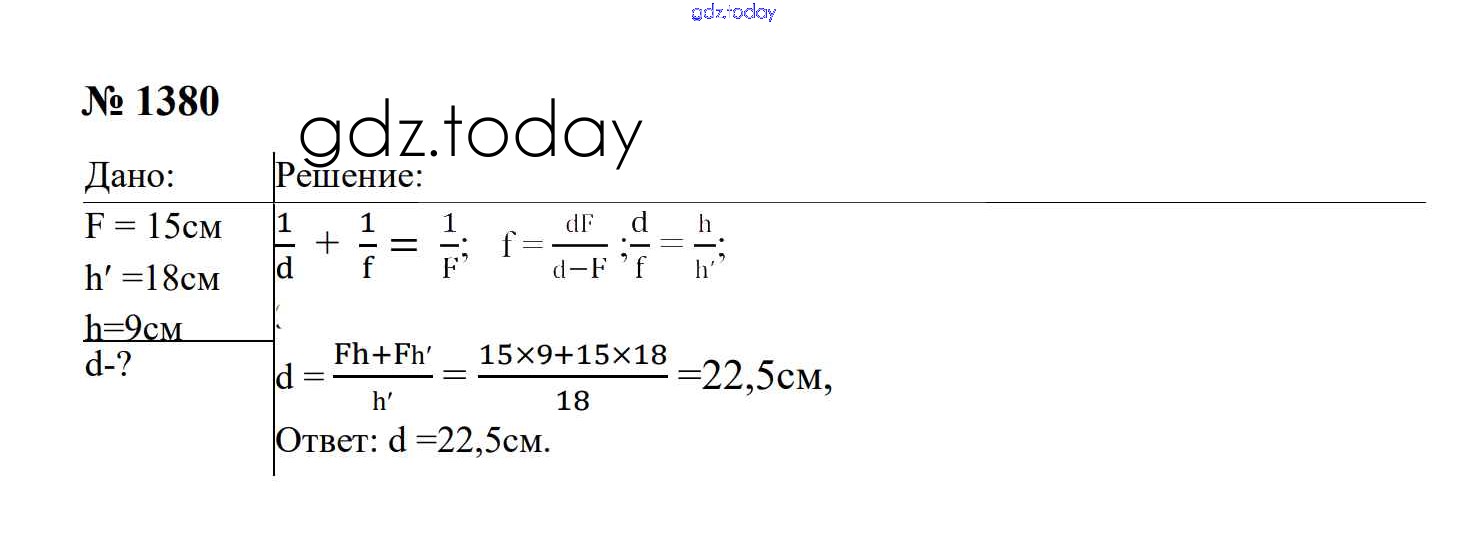 Ответы к Световые явления Решение. 8 класс 1380 Сборнику задач по Физике для 7-9 класса Перышкин, Лонцова Экзамен УМК 2016