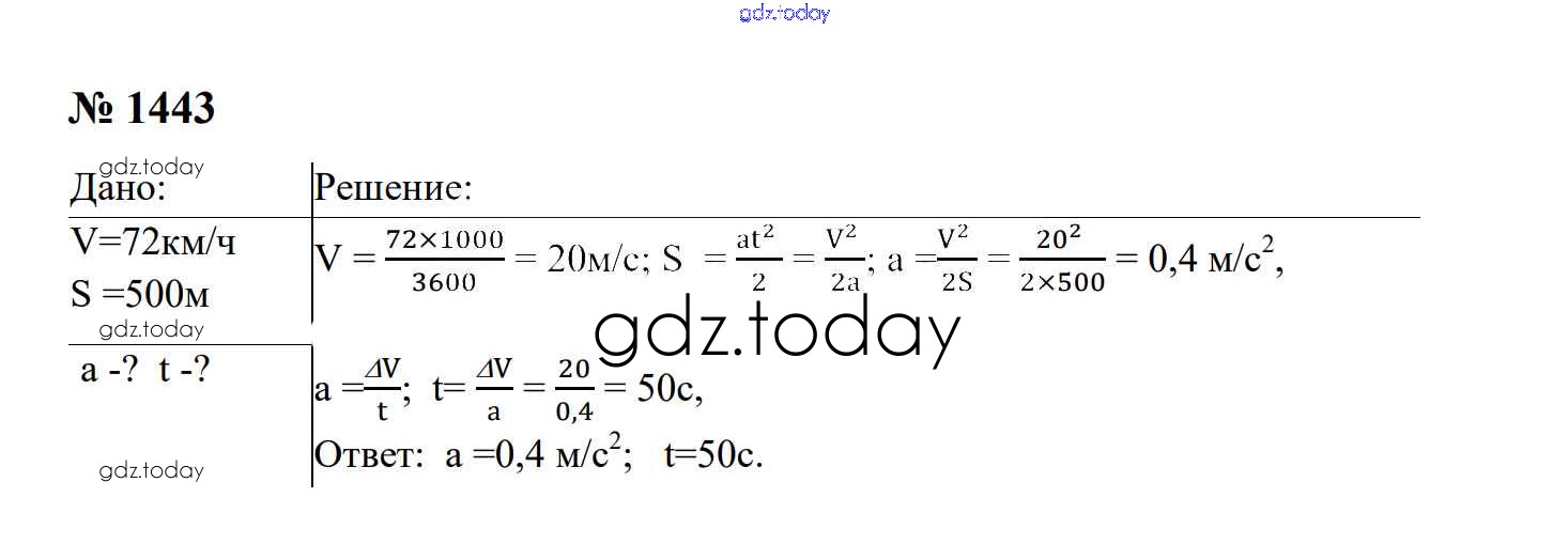 На страницах сайта gdz.today вы найдете учебный и вспомогательный материал, направленный на улучшения знаний школьной программы. ГДЗ - онлайн мир знаний Законы взаимодействия и движения тел Решение. 9 класс 1443 Сборнику задач по Физике для 7-9 класса Перышкин, Лонцова Экзамен УМК 2016