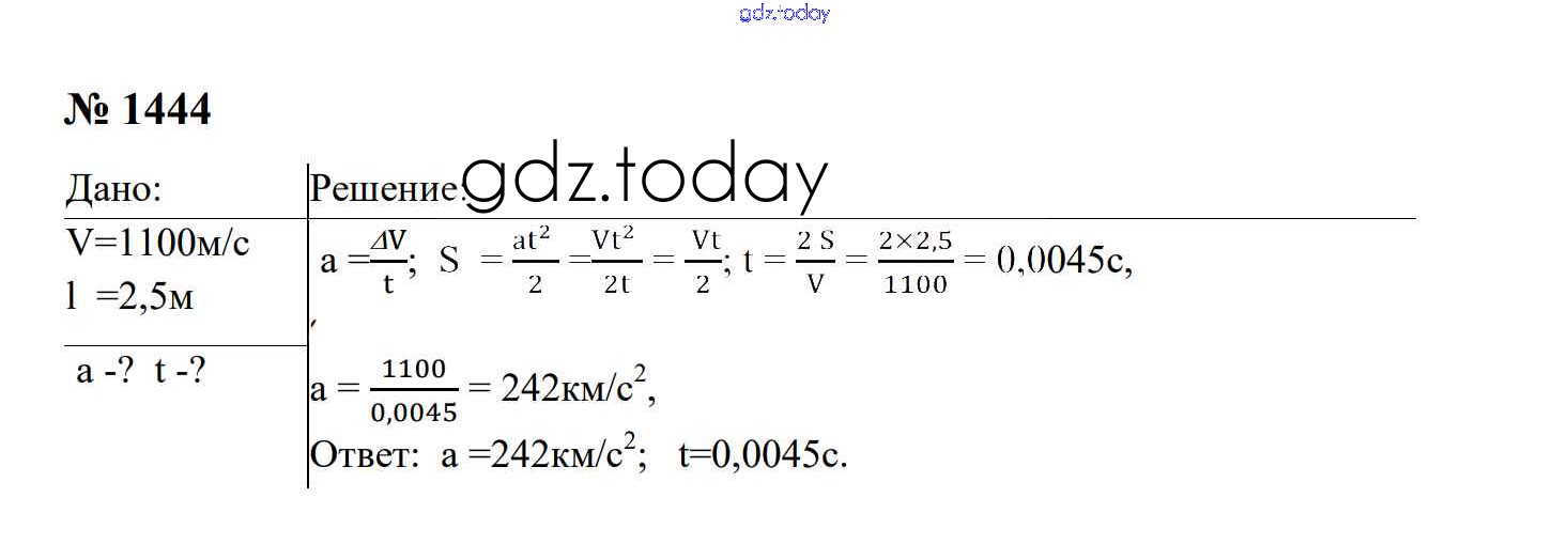 На страницах сайта gdz.today вы найдете учебный и вспомогательный материал, направленный на улучшения знаний школьной программы. ГДЗ - онлайн мир знаний Законы взаимодействия и движения тел Решение. 9 класс 1444 Сборнику задач по Физике для 7-9 класса Перышкин, Лонцова Экзамен УМК 2016
