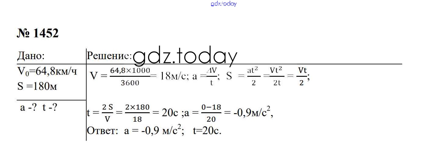 На страницах сайта gdz.today вы найдете учебный и вспомогательный материал, направленный на улучшения знаний школьной программы. ГДЗ - онлайн мир знаний Законы взаимодействия и движения тел Решение. 9 класс 1452 Сборнику задач по Физике для 7-9 класса Перышкин, Лонцова Экзамен УМК 2016