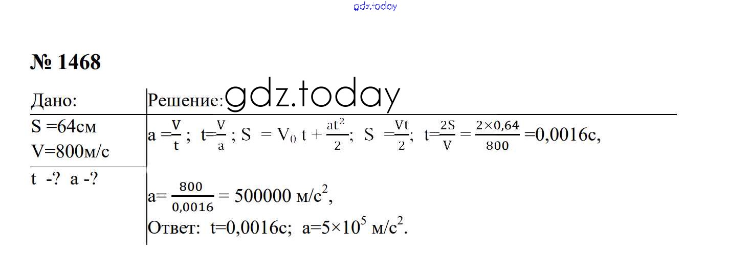 На страницах сайта gdz.today вы найдете учебный и вспомогательный материал, направленный на улучшения знаний школьной программы. ГДЗ - онлайн мир знаний Законы взаимодействия и движения тел Решение. 9 класс 1468 Сборнику задач по Физике для 7-9 класса Перышкин, Лонцова Экзамен УМК 2016