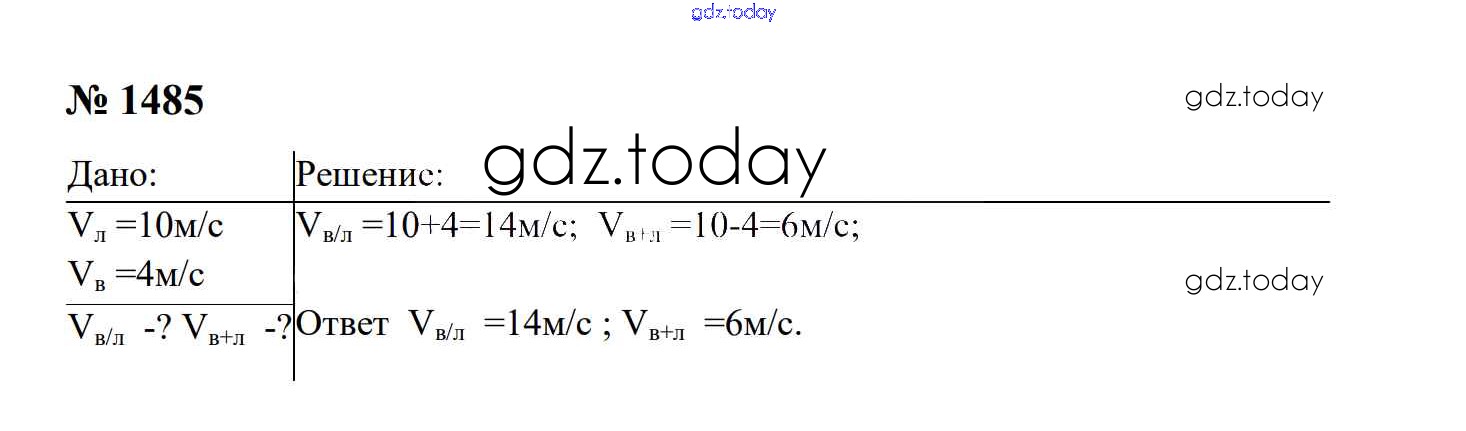 На страницах сайта gdz.today вы найдете учебный и вспомогательный материал, направленный на улучшения знаний школьной программы. ГДЗ - онлайн мир знаний Законы взаимодействия и движения тел Решение. 9 класс 1485 Сборнику задач по Физике для 7-9 класса Перышкин, Лонцова Экзамен УМК 2016