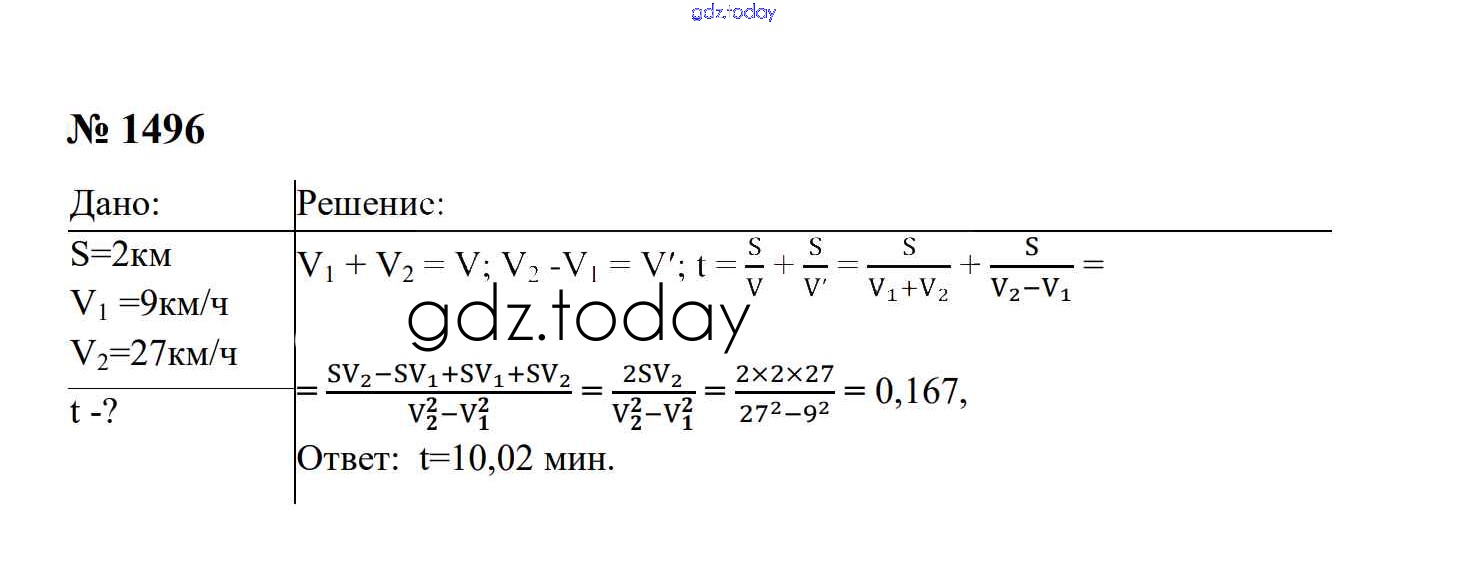 На страницах сайта gdz.today вы найдете учебный и вспомогательный материал, направленный на улучшения знаний школьной программы. ГДЗ - онлайн мир знаний Законы взаимодействия и движения тел Решение. 9 класс 1496 Сборнику задач по Физике для 7-9 класса Перышкин, Лонцова Экзамен УМК 2016