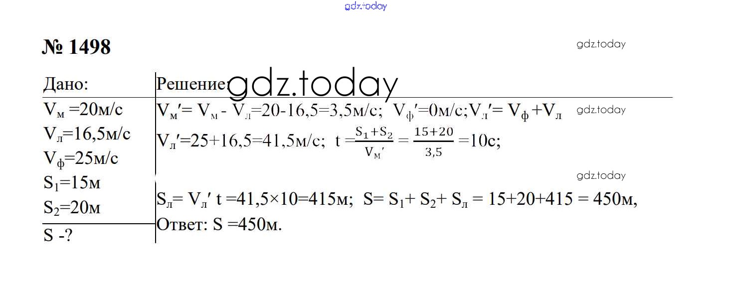 На страницах сайта gdz.today вы найдете учебный и вспомогательный материал, направленный на улучшения знаний школьной программы. ГДЗ - онлайн мир знаний Законы взаимодействия и движения тел Решение. 9 класс 1498 Сборнику задач по Физике для 7-9 класса Перышкин, Лонцова Экзамен УМК 2016