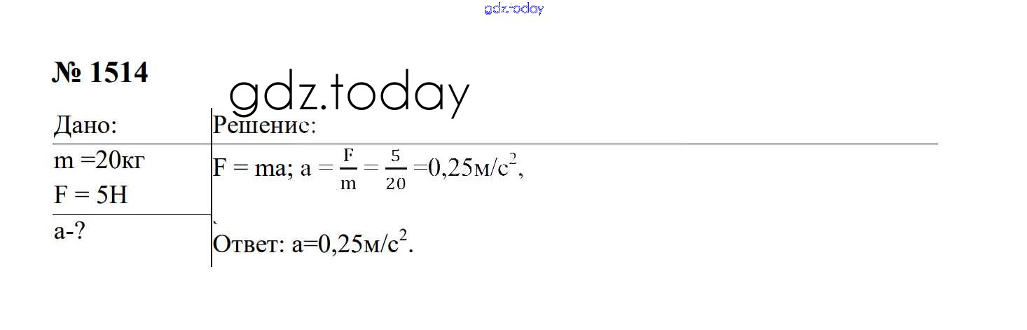 На страницах сайта gdz.today вы найдете учебный и вспомогательный материал, направленный на улучшения знаний школьной программы. ГДЗ - онлайн мир знаний Законы взаимодействия и движения тел Решение. 9 класс 1514 Сборнику задач по Физике для 7-9 класса Перышкин, Лонцова Экзамен УМК 2016
