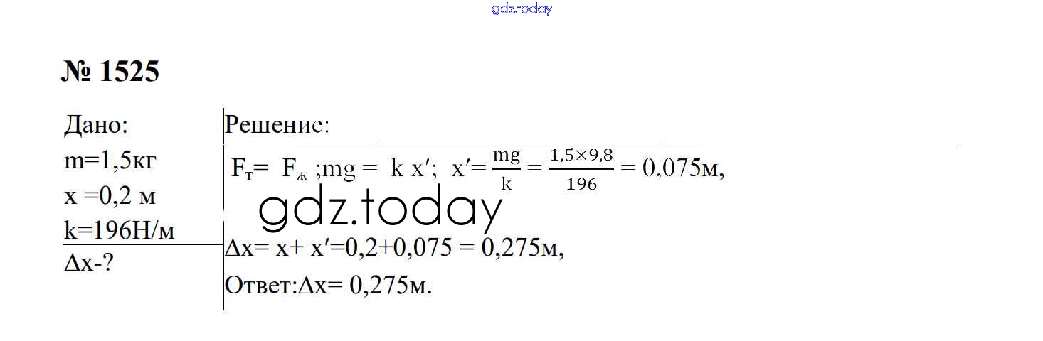На страницах сайта gdz.today вы найдете учебный и вспомогательный материал, направленный на улучшения знаний школьной программы. ГДЗ - онлайн мир знаний Законы взаимодействия и движения тел Решение. 9 класс 1525 Сборнику задач по Физике для 7-9 класса Перышкин, Лонцова Экзамен УМК 2016
