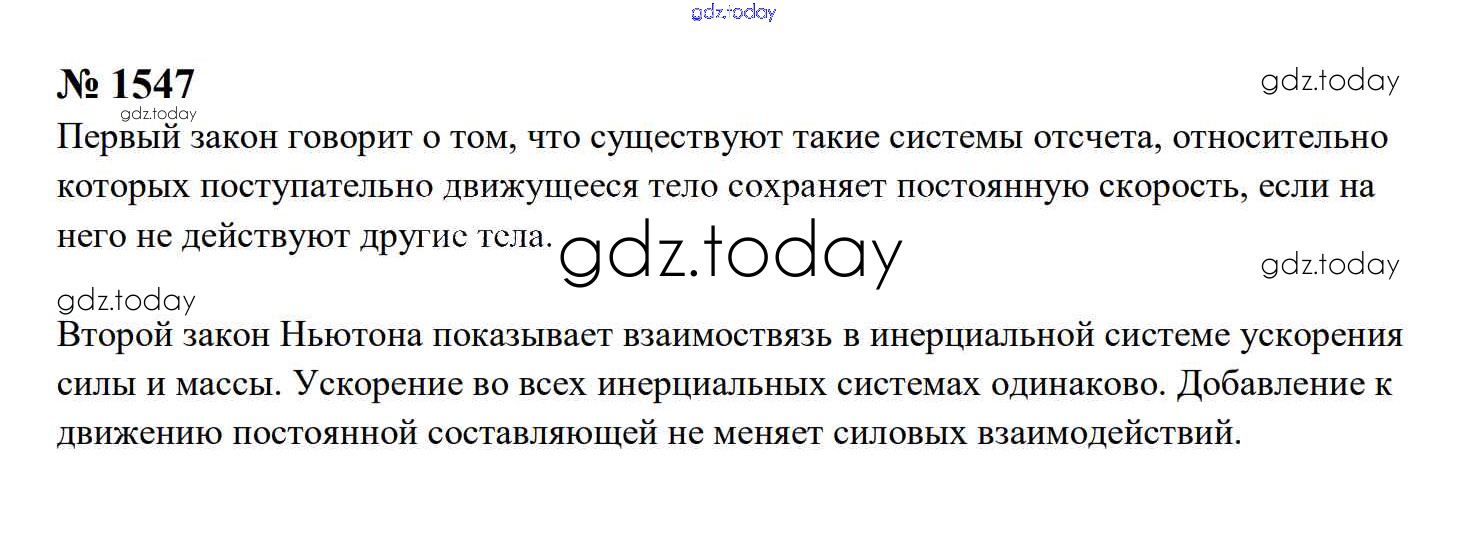 На страницах сайта gdz.today вы найдете учебный и вспомогательный материал, направленный на улучшения знаний школьной программы. ГДЗ - онлайн мир знаний Законы взаимодействия и движения тел Решение. 9 класс 1547 Сборнику задач по Физике для 7-9 класса Перышкин, Лонцова Экзамен УМК 2016