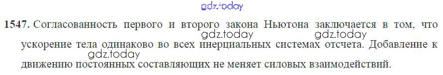 На страницах сайта gdz.today вы найдете учебный и вспомогательный материал, направленный на улучшения знаний школьной программы. ГДЗ - онлайн мир знаний Законы взаимодействия и движения тел Решение 9 класс 1547 Сборнику задач по Физике для 7-9 класса Перышкин, Лонцова Экзамен УМК 2016