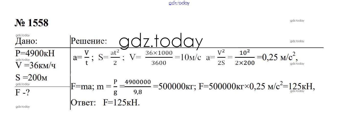На страницах сайта gdz.today вы найдете учебный и вспомогательный материал, направленный на улучшения знаний школьной программы. ГДЗ - онлайн мир знаний Законы взаимодействия и движения тел Решение. 9 класс 1558 Сборнику задач по Физике для 7-9 класса Перышкин, Лонцова Экзамен УМК 2016