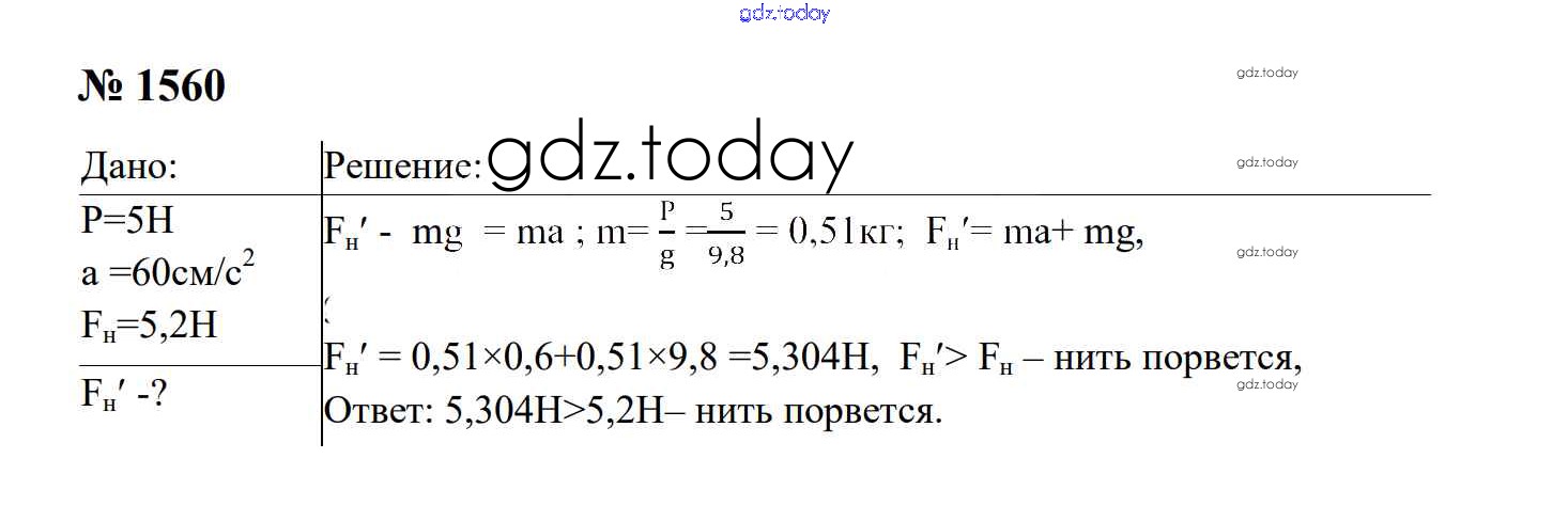 На страницах сайта gdz.today вы найдете учебный и вспомогательный материал, направленный на улучшения знаний школьной программы. ГДЗ - онлайн мир знаний Законы взаимодействия и движения тел Решение. 9 класс 1560 Сборнику задач по Физике для 7-9 класса Перышкин, Лонцова Экзамен УМК 2016
