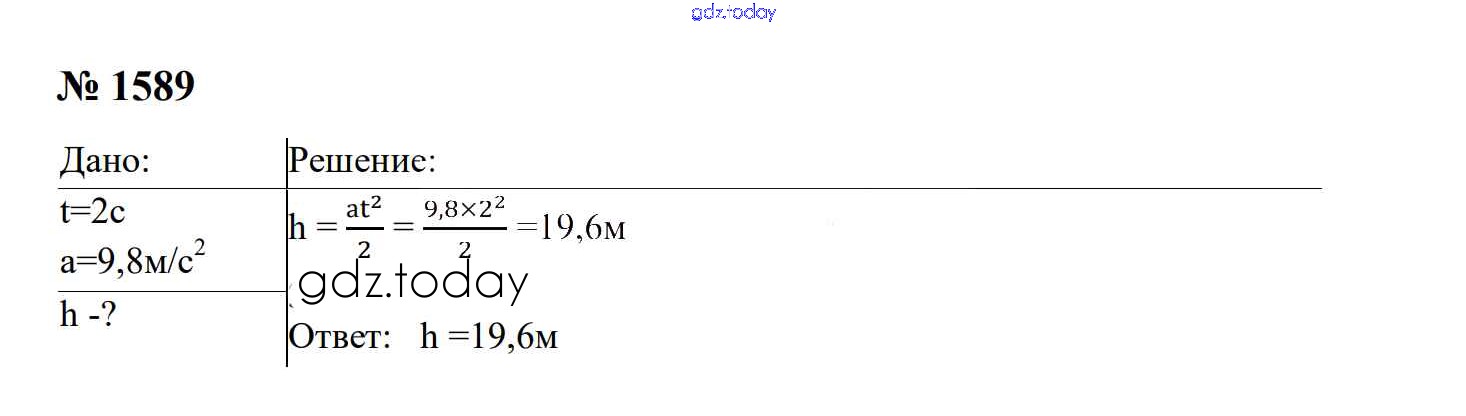 На страницах сайта gdz.today вы найдете учебный и вспомогательный материал, направленный на улучшения знаний школьной программы. ГДЗ - онлайн мир знаний Законы взаимодействия и движения тел Решение. 9 класс 1589 Сборнику задач по Физике для 7-9 класса Перышкин, Лонцова Экзамен УМК 2016