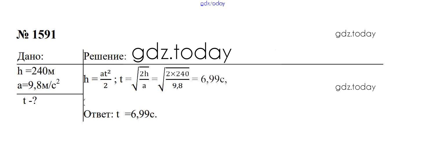 На страницах сайта gdz.today вы найдете учебный и вспомогательный материал, направленный на улучшения знаний школьной программы. ГДЗ - онлайн мир знаний Законы взаимодействия и движения тел Решение. 9 класс 1591 Сборнику задач по Физике для 7-9 класса Перышкин, Лонцова Экзамен УМК 2016