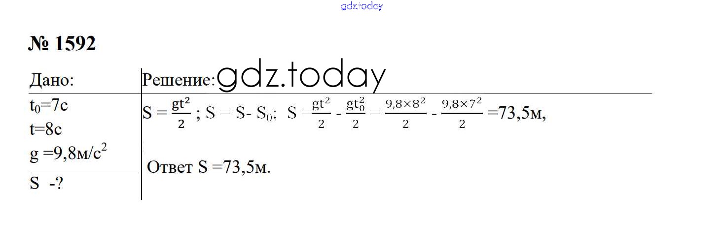 На страницах сайта gdz.today вы найдете учебный и вспомогательный материал, направленный на улучшения знаний школьной программы. ГДЗ - онлайн мир знаний Законы взаимодействия и движения тел Решение. 9 класс 1592 Сборнику задач по Физике для 7-9 класса Перышкин, Лонцова Экзамен УМК 2016
