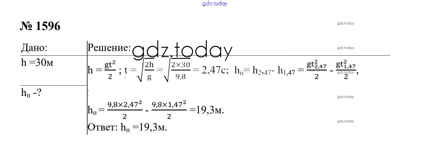 На страницах сайта gdz.today вы найдете учебный и вспомогательный материал, направленный на улучшения знаний школьной программы. ГДЗ - онлайн мир знаний Законы взаимодействия и движения тел Решение. 9 класс 1596 Сборнику задач по Физике для 7-9 класса Перышкин, Лонцова Экзамен УМК 2016