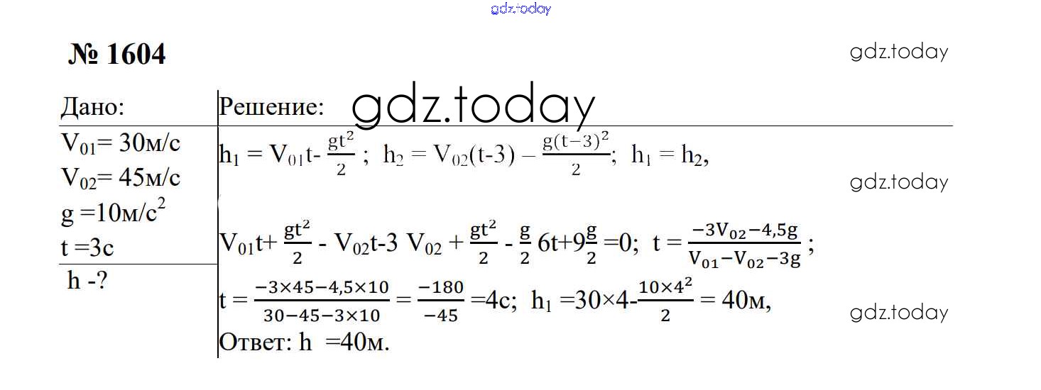На страницах сайта gdz.today вы найдете учебный и вспомогательный материал, направленный на улучшения знаний школьной программы. ГДЗ - онлайн мир знаний Законы взаимодействия и движения тел Решение. 9 класс 1604 Сборнику задач по Физике для 7-9 класса Перышкин, Лонцова Экзамен УМК 2016