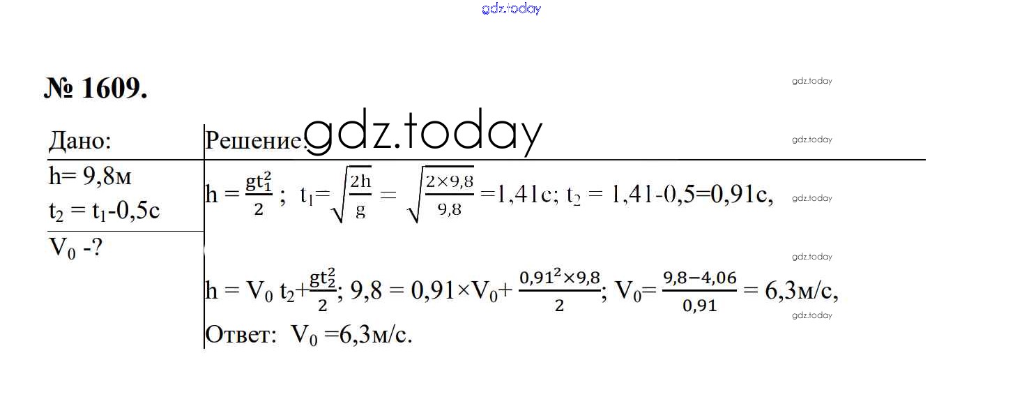 На страницах сайта gdz.today вы найдете учебный и вспомогательный материал, направленный на улучшения знаний школьной программы. ГДЗ - онлайн мир знаний Законы взаимодействия и движения тел Решение. 9 класс 1609 Сборнику задач по Физике для 7-9 класса Перышкин, Лонцова Экзамен УМК 2016