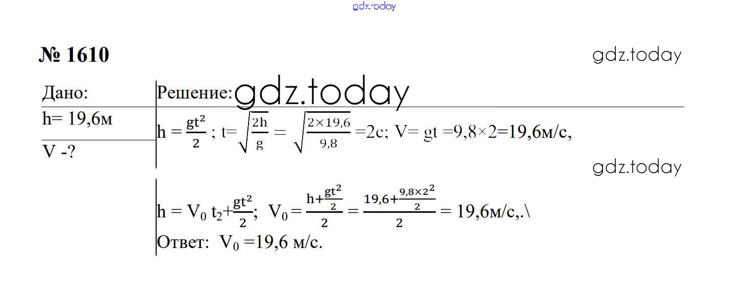 На страницах сайта gdz.today вы найдете учебный и вспомогательный материал, направленный на улучшения знаний школьной программы. ГДЗ - онлайн мир знаний Законы взаимодействия и движения тел Решение. 9 класс 1610 Сборнику задач по Физике для 7-9 класса Перышкин, Лонцова Экзамен УМК 2016