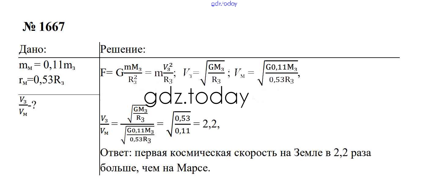На страницах сайта gdz.today вы найдете учебный и вспомогательный материал, направленный на улучшения знаний школьной программы. ГДЗ - онлайн мир знаний Законы взаимодействия и движения тел Решение. 9 класс 1667 Сборнику задач по Физике для 7-9 класса Перышкин, Лонцова Экзамен УМК 2016