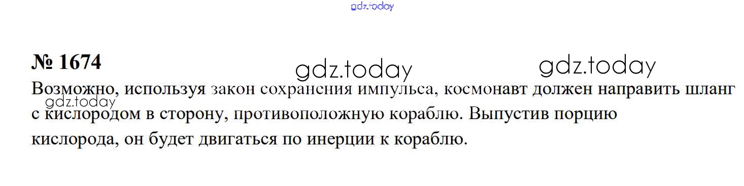 На страницах сайта gdz.today вы найдете учебный и вспомогательный материал, направленный на улучшения знаний школьной программы. ГДЗ - онлайн мир знаний Законы взаимодействия и движения тел Решение. 9 класс 1674 Сборнику задач по Физике для 7-9 класса Перышкин, Лонцова Экзамен УМК 2016