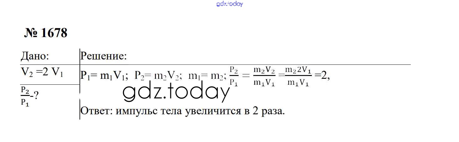 На страницах сайта gdz.today вы найдете учебный и вспомогательный материал, направленный на улучшения знаний школьной программы. ГДЗ - онлайн мир знаний Законы взаимодействия и движения тел Решение. 9 класс 1678 Сборнику задач по Физике для 7-9 класса Перышкин, Лонцова Экзамен УМК 2016