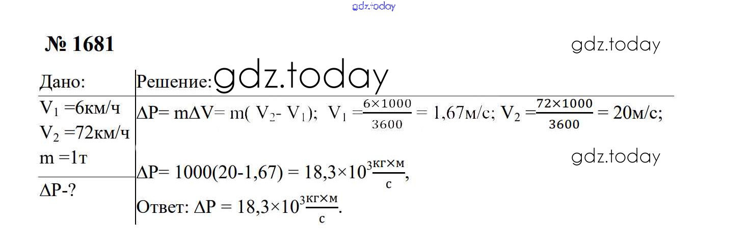 На страницах сайта gdz.today вы найдете учебный и вспомогательный материал, направленный на улучшения знаний школьной программы. ГДЗ - онлайн мир знаний Законы взаимодействия и движения тел Решение. 9 класс 1681 Сборнику задач по Физике для 7-9 класса Перышкин, Лонцова Экзамен УМК 2016