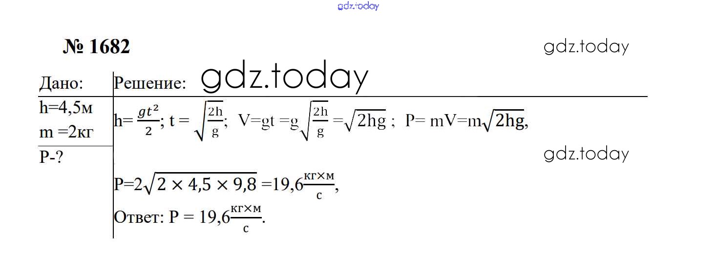 На страницах сайта gdz.today вы найдете учебный и вспомогательный материал, направленный на улучшения знаний школьной программы. ГДЗ - онлайн мир знаний Законы взаимодействия и движения тел Решение. 9 класс 1682 Сборнику задач по Физике для 7-9 класса Перышкин, Лонцова Экзамен УМК 2016