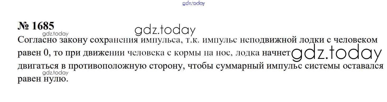 На страницах сайта gdz.today вы найдете учебный и вспомогательный материал, направленный на улучшения знаний школьной программы. ГДЗ - онлайн мир знаний Законы взаимодействия и движения тел Решение. 9 класс 1685 Сборнику задач по Физике для 7-9 класса Перышкин, Лонцова Экзамен УМК 2016