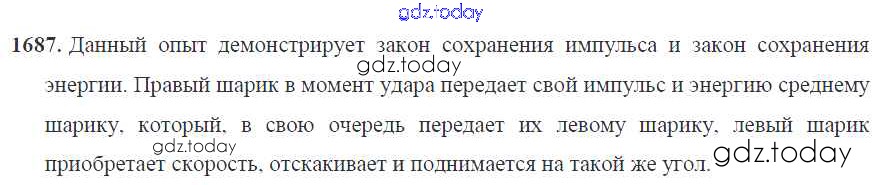 На страницах сайта gdz.today вы найдете учебный и вспомогательный материал, направленный на улучшения знаний школьной программы. ГДЗ - онлайн мир знаний Законы взаимодействия и движения тел Решение 9 класс 1687 Сборнику задач по Физике для 7-9 класса Перышкин, Лонцова Экзамен УМК 2016