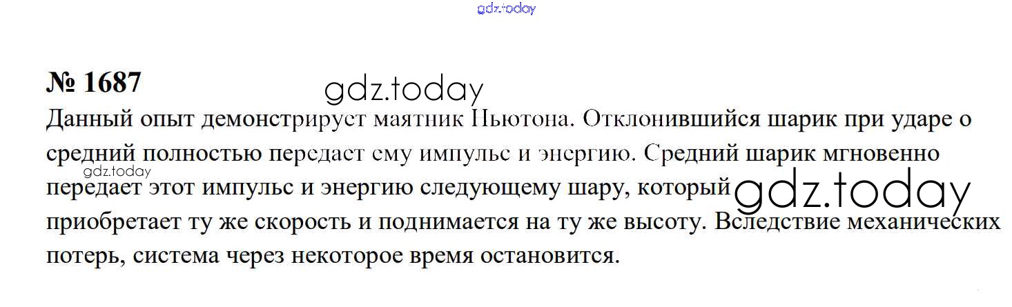 На страницах сайта gdz.today вы найдете учебный и вспомогательный материал, направленный на улучшения знаний школьной программы. ГДЗ - онлайн мир знаний Законы взаимодействия и движения тел Решение. 9 класс 1687 Сборнику задач по Физике для 7-9 класса Перышкин, Лонцова Экзамен УМК 2016