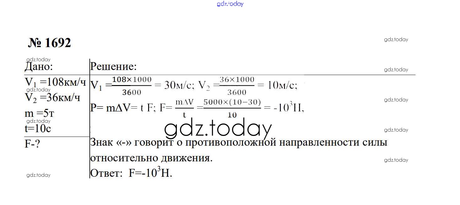 На страницах сайта gdz.today вы найдете учебный и вспомогательный материал, направленный на улучшения знаний школьной программы. ГДЗ - онлайн мир знаний Законы взаимодействия и движения тел Решение. 9 класс 1692 Сборнику задач по Физике для 7-9 класса Перышкин, Лонцова Экзамен УМК 2016