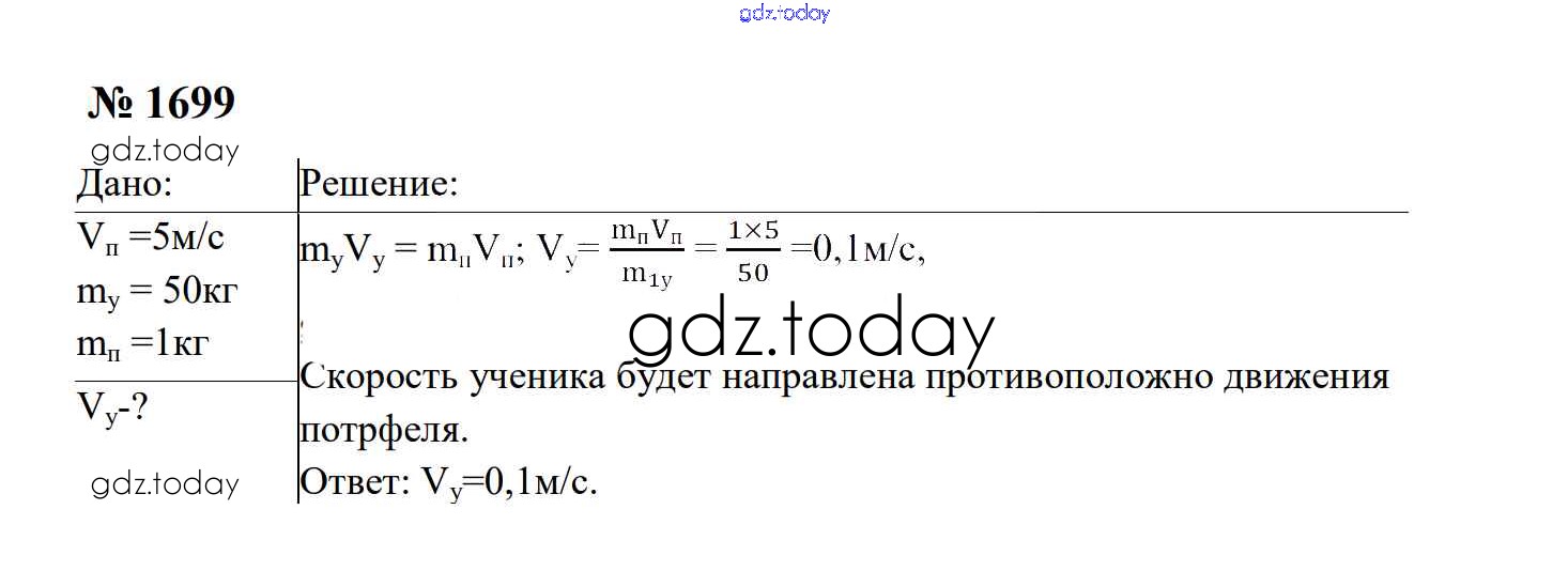 На страницах сайта gdz.today вы найдете учебный и вспомогательный материал, направленный на улучшения знаний школьной программы. ГДЗ - онлайн мир знаний Законы взаимодействия и движения тел Решение. 9 класс 1699 Сборнику задач по Физике для 7-9 класса Перышкин, Лонцова Экзамен УМК 2016