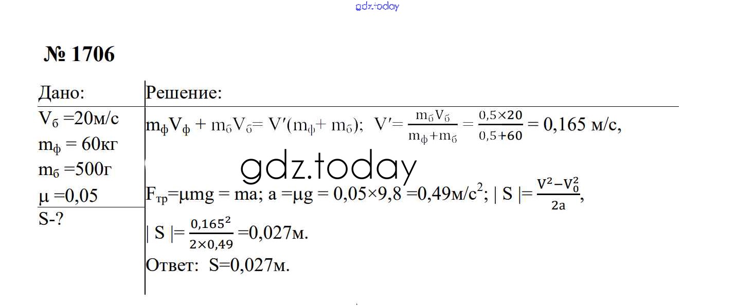 На страницах сайта gdz.today вы найдете учебный и вспомогательный материал, направленный на улучшения знаний школьной программы. ГДЗ - онлайн мир знаний Законы взаимодействия и движения тел Решение. 9 класс 1706 Сборнику задач по Физике для 7-9 класса Перышкин, Лонцова Экзамен УМК 2016