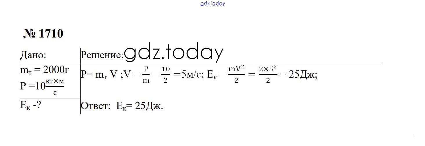 На страницах сайта gdz.today вы найдете учебный и вспомогательный материал, направленный на улучшения знаний школьной программы. ГДЗ - онлайн мир знаний Законы взаимодействия и движения тел Решение. 9 класс 1710 Сборнику задач по Физике для 7-9 класса Перышкин, Лонцова Экзамен УМК 2016
