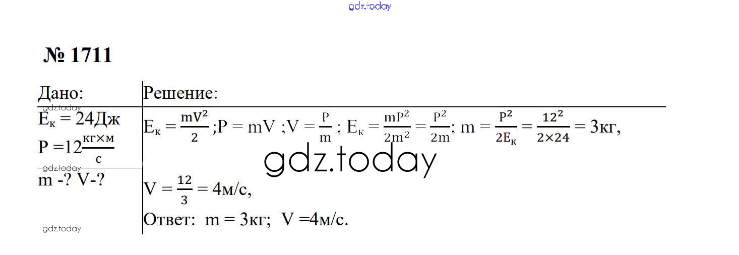 На страницах сайта gdz.today вы найдете учебный и вспомогательный материал, направленный на улучшения знаний школьной программы. ГДЗ - онлайн мир знаний Законы взаимодействия и движения тел Решение. 9 класс 1711 Сборнику задач по Физике для 7-9 класса Перышкин, Лонцова Экзамен УМК 2016
