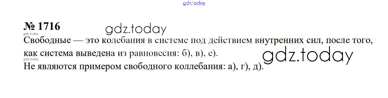 На страницах сайта gdz.today вы найдете учебный и вспомогательный материал, направленный на улучшения знаний школьной программы. ГДЗ - онлайн мир знаний Механические колебания и волны. Звук Решение. 9 класс 1716 Сборнику задач по Физике для 7-9 класса Перышкин, Лонцова Экзамен УМК 2016