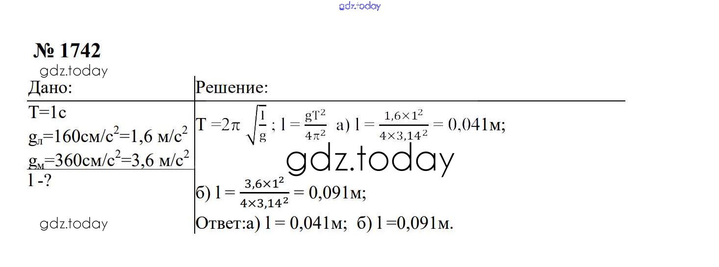 Ответы к Механические колебания и волны. Звук Решение. 9 класс 1742 Сборнику задач по Физике для 7-9 класса Перышкин, Лонцова Экзамен УМК 2016
