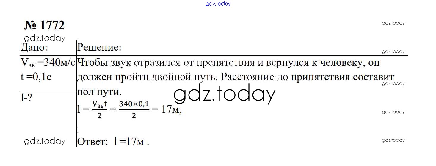 Ответы к Механические колебания и волны. Звук Решение. 9 класс 1772 Сборнику задач по Физике для 7-9 класса Перышкин, Лонцова Экзамен УМК 2016
