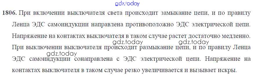Ответы к Электромагнитное поле Решение 9 класс 1806 Сборнику задач по Физике для 7-9 класса Перышкин, Лонцова Экзамен УМК 2016