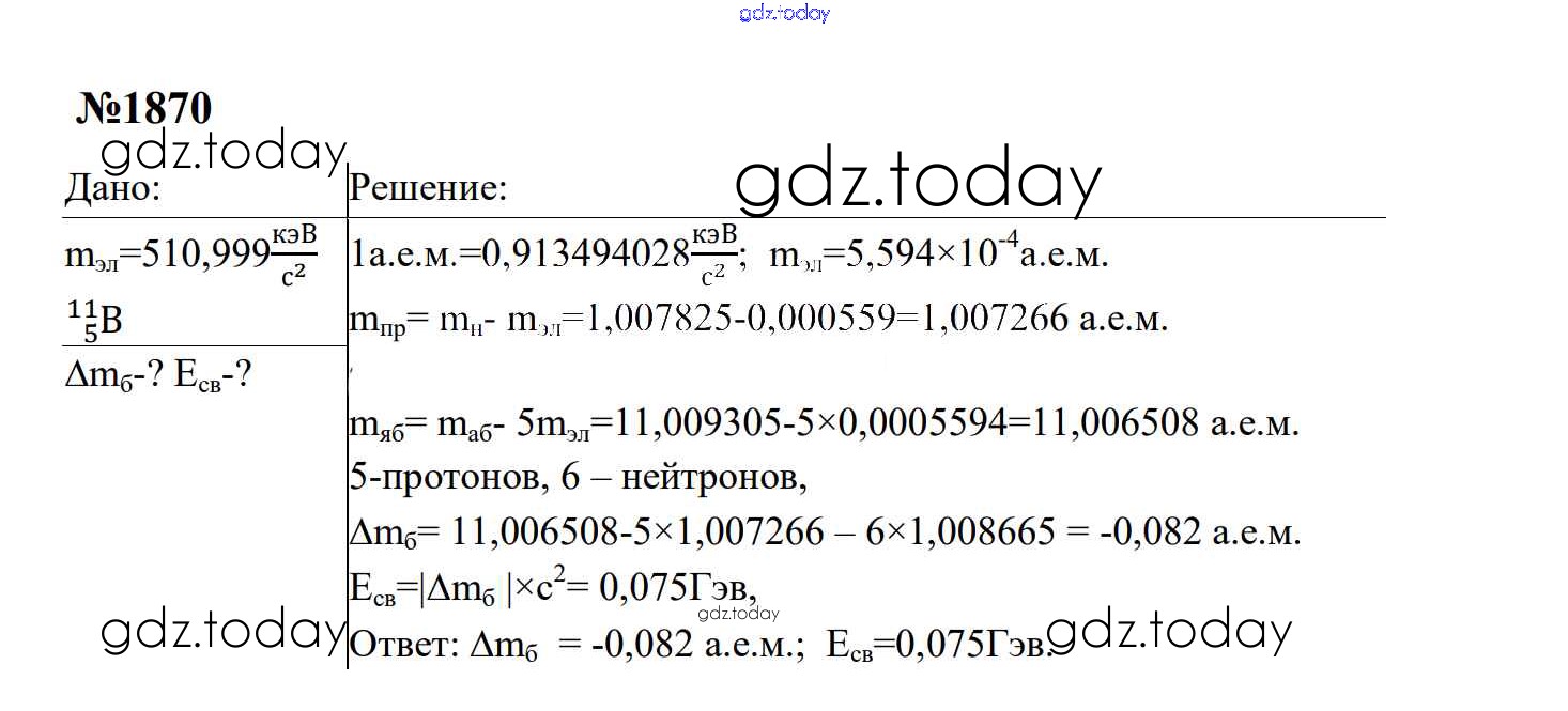 На страницах сайта gdz.today вы найдете учебный и вспомогательный материал, направленный на улучшения знаний школьной программы. ГДЗ - онлайн мир знаний Строение атома и атомного ядра. Использование энергии атомных ядер Решение. 9 класс 1870 Сборнику задач по Физике для 7-9 класса Перышкин, Лонцова Экзамен УМК 2016