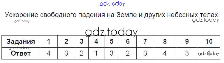 На страницах сайта gdz.today вы найдете учебный и вспомогательный материал, направленный на улучшения знаний школьной программы. ГДЗ - онлайн мир знаний Глава 1. Законы взаимодействия и движения тел Ускорение свободного падения на Земле и других небесных телах Тестам по Физике для 9 класса Громцева Экзамен УМК 2017