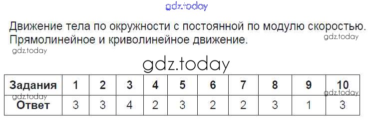 На страницах сайта gdz.today вы найдете учебный и вспомогательный материал, направленный на улучшения знаний школьной программы. ГДЗ - онлайн мир знаний Глава 1. Законы взаимодействия и движения тел Движение тела по окружности с постоянной по модулю скоростью Тестам по Физике для 9 класса Громцева Экзамен УМК 2017