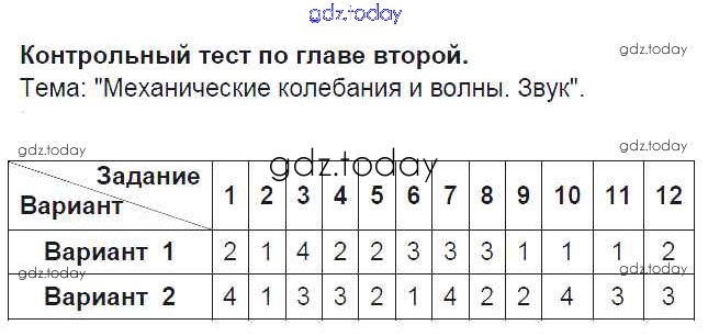На страницах сайта gdz.today вы найдете учебный и вспомогательный материал, направленный на улучшения знаний школьной программы. ГДЗ - онлайн мир знаний Глава 2. Механические колебания и волны Контрольный тест Тестам по Физике для 9 класса Громцева Экзамен УМК 2017