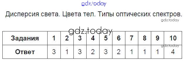 На страницах сайта gdz.today вы найдете учебный и вспомогательный материал, направленный на улучшения знаний школьной программы. ГДЗ - онлайн мир знаний Глава 3. Электромагнитное поле Дисперсия света. Цвета тел. Типы оптических спектров Тестам по Физике для 9 класса Громцева Экзамен УМК 2017