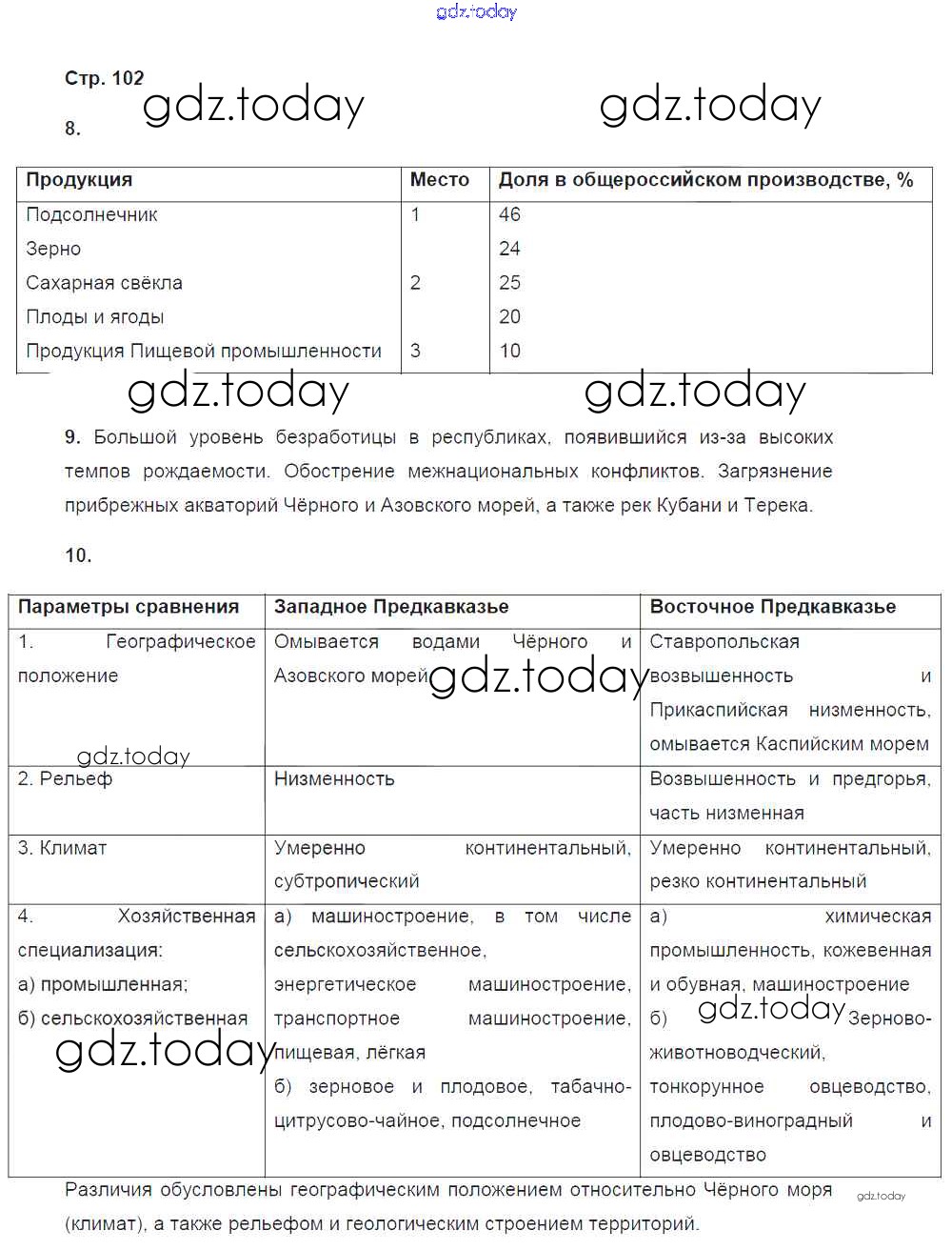 На страницах сайта gdz.today вы найдете учебный и вспомогательный материал, направленный на улучшения знаний школьной программы. ГДЗ - онлайн мир знаний Страницы (решение) 102 Рабочей тетради по Географии для 9 класса Ким, Марченко Дрофа Вертикаль 2017
