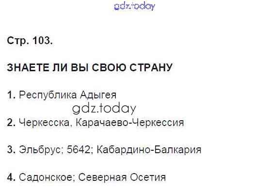 На страницах сайта gdz.today вы найдете учебный и вспомогательный материал, направленный на улучшения знаний школьной программы. ГДЗ - онлайн мир знаний Страницы (решение) 103 Рабочей тетради по Географии для 9 класса Ким, Марченко Дрофа Вертикаль 2017