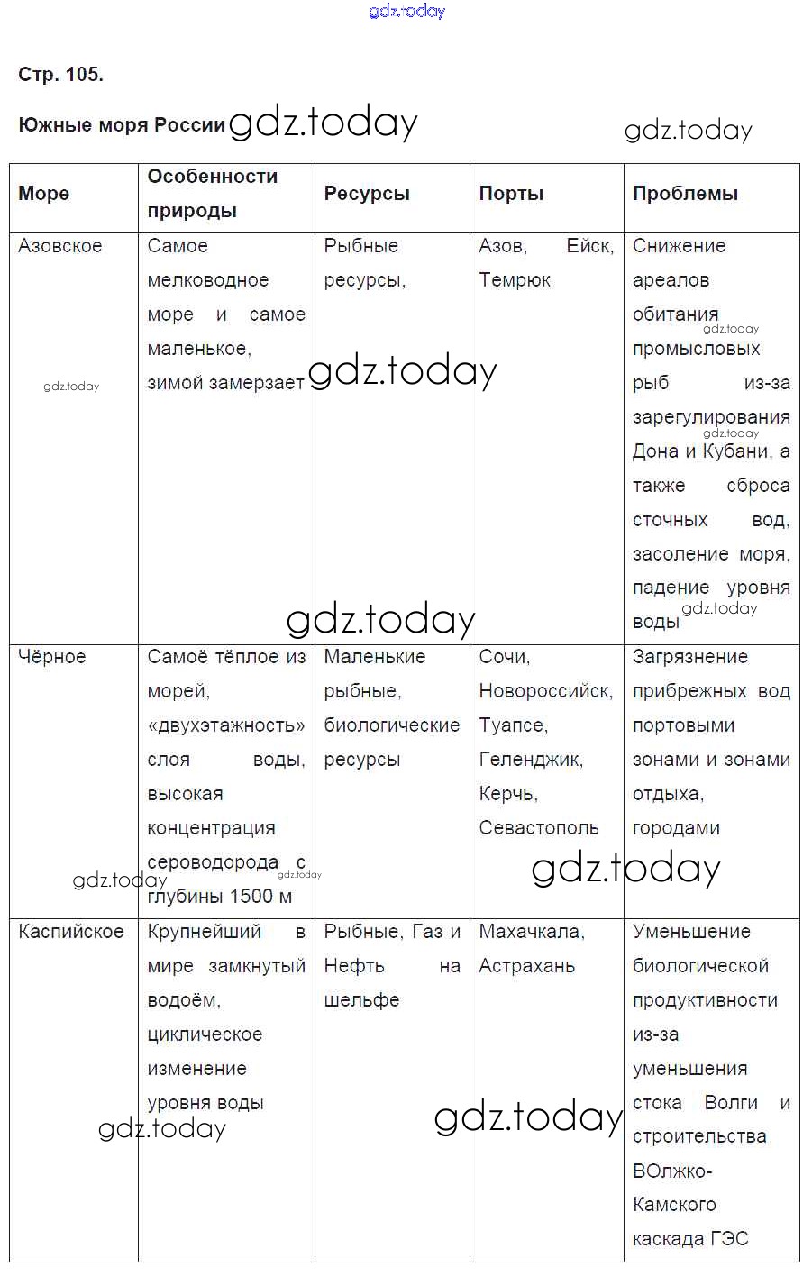 Ответы к Страницы (решение) 105 Рабочей тетради по Географии для 9 класса Ким, Марченко Дрофа Вертикаль 2017
