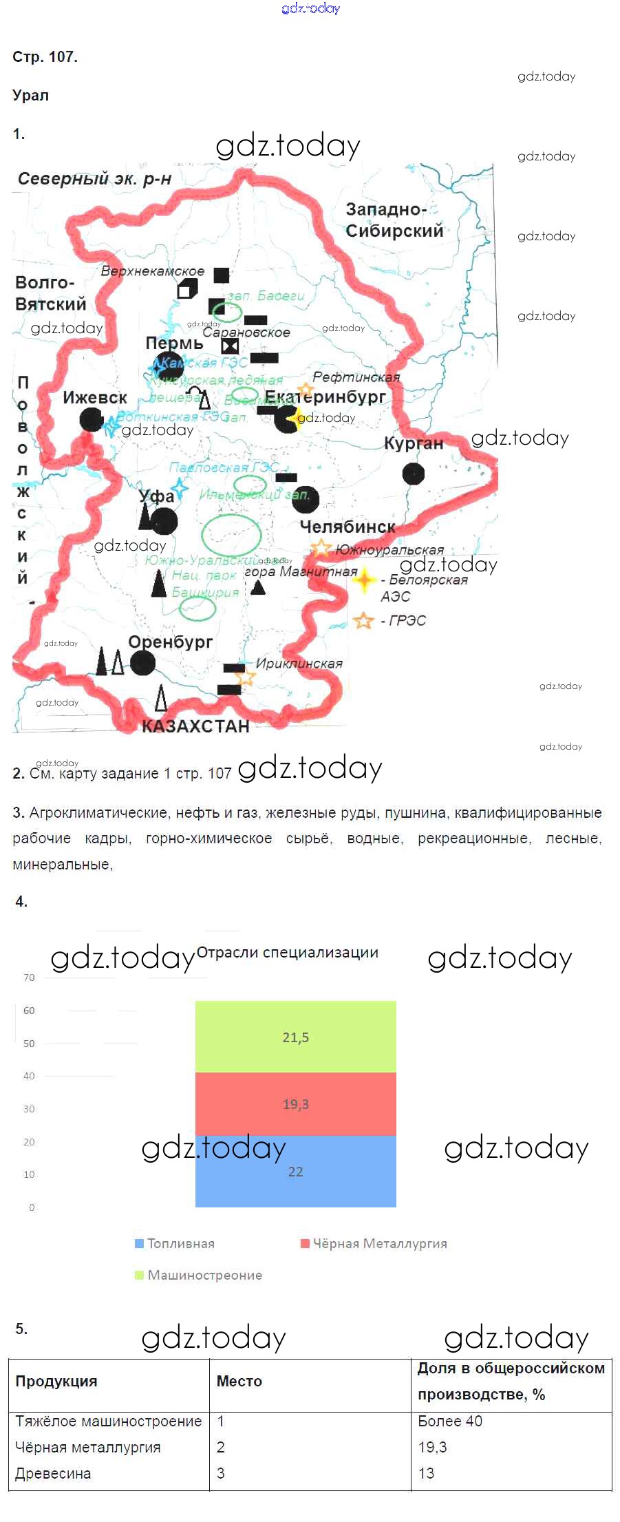 Ответы к Страницы (решение) 107 Рабочей тетради по Географии для 9 класса Ким, Марченко Дрофа Вертикаль 2017