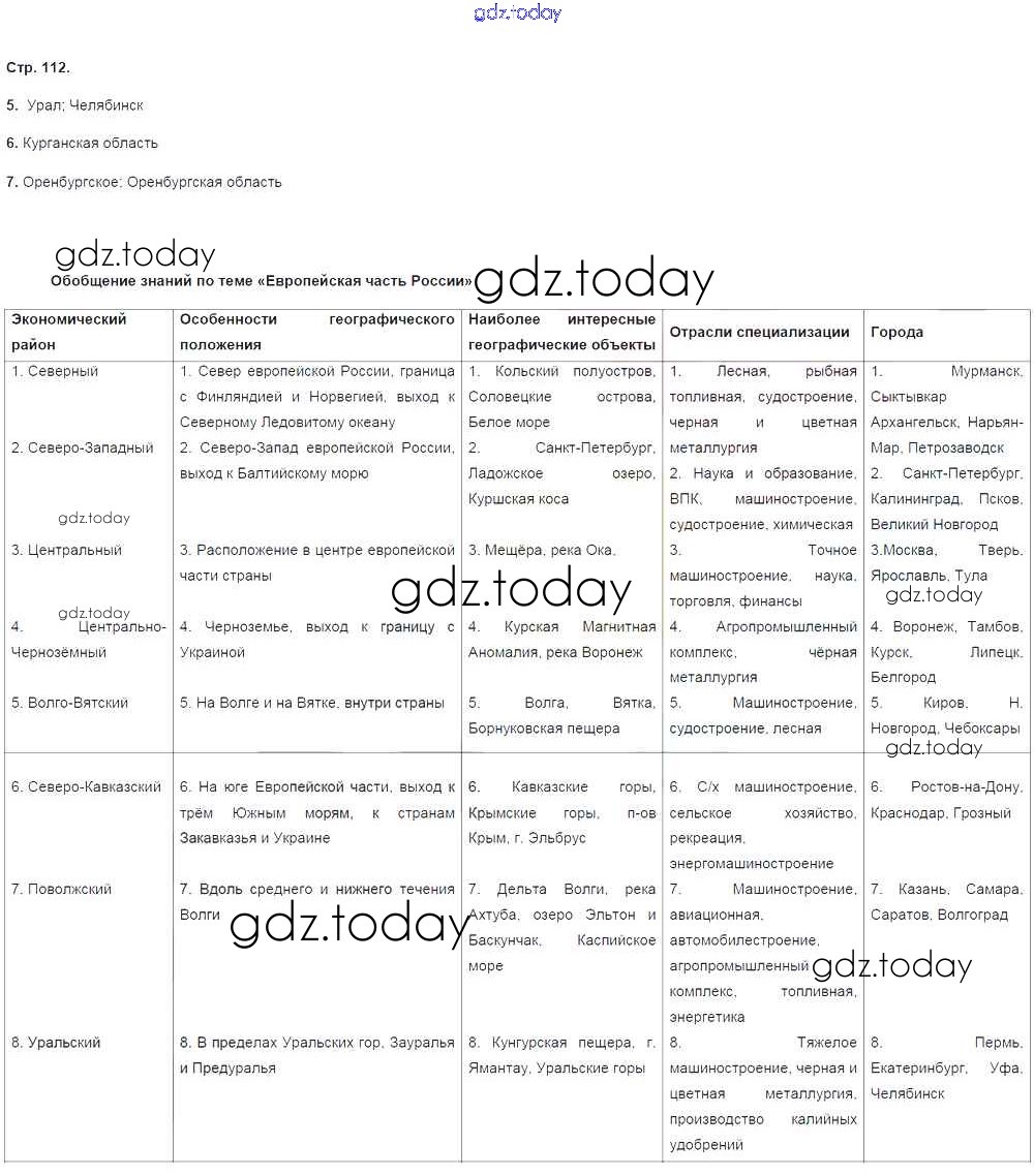 На страницах сайта gdz.today вы найдете учебный и вспомогательный материал, направленный на улучшения знаний школьной программы. ГДЗ - онлайн мир знаний Страницы (решение) 112 Рабочей тетради по Географии для 9 класса Ким, Марченко Дрофа Вертикаль 2017